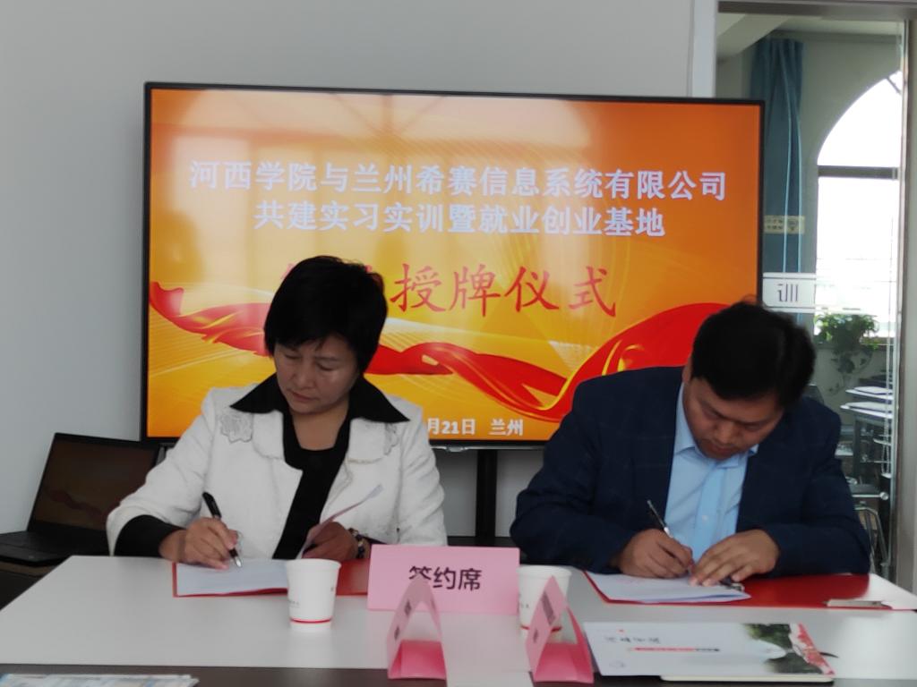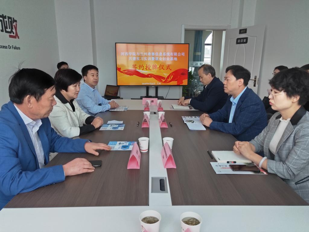 9月21日,w88win优德在兰州希赛信息系统有限公司举行实习实训暨创业就业基地授牌仪式。河西公司党委常委、副董事长强梅,就业指导中心主任沈承明,w88win优德副经理韩振海、兰州希赛信息系统有限公司总经理满国栋参加了授牌仪式。