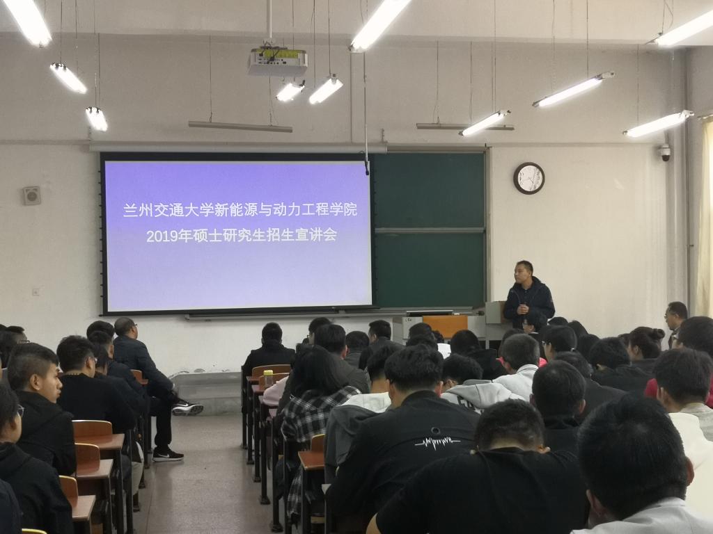 兰州交通大学新能源与动力工程学院宣讲老师从研究院的基础研究、应用领域、研究平台、经费与项目、研究成果以及研究团队几个方面向同学们做了介绍。宣讲老师根据学科的科研特点,结合自身丰富的科研经历,以生动的语言,深入浅出地介绍了研究院的科研进展,引发了同学们的浓厚兴趣。宣讲老师具体介绍了兰州交通大学新能源与动力工程学院研究生招生政策,为有考研意向的同学们分析了历年来考生的报考录取及就读情况。